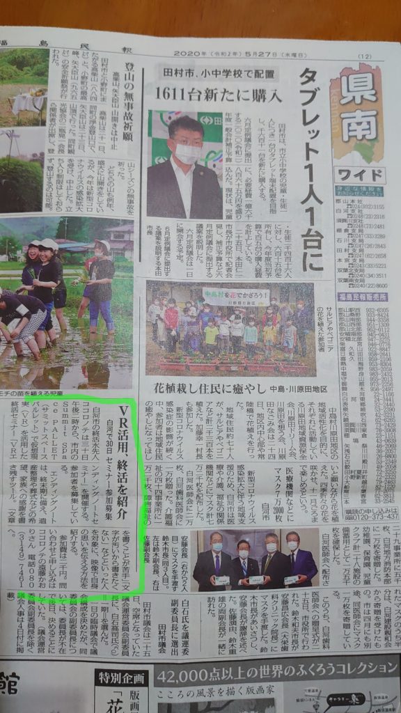 2020年5月27日 福島民報新聞 12面県南ワイドにて告知していただきました。