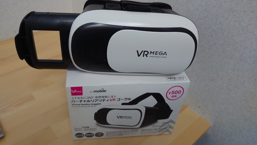 スマホを中に入れて使用するVRゴーグルを準備しました。
