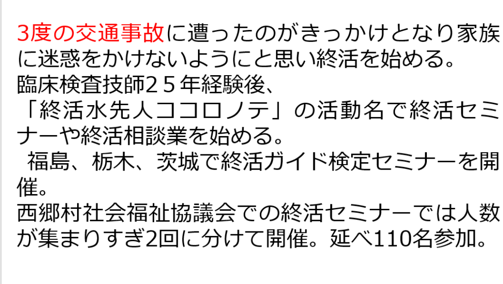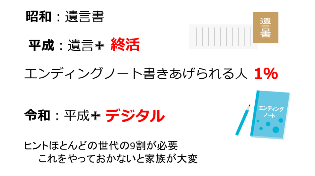 昭和~平成~令和の時代へと終活の必要、変化についてお話しました。